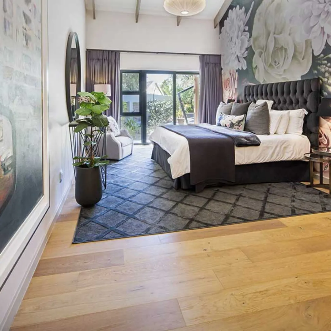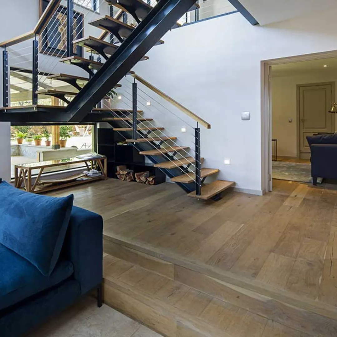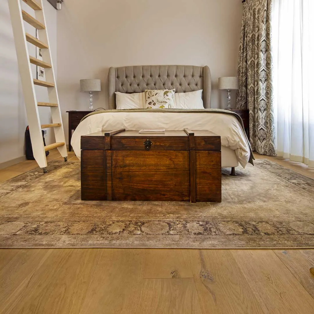 Rustic grade – Full of character with visible knots have been filled and sanded to complement the natural figuring and colour of the boards.